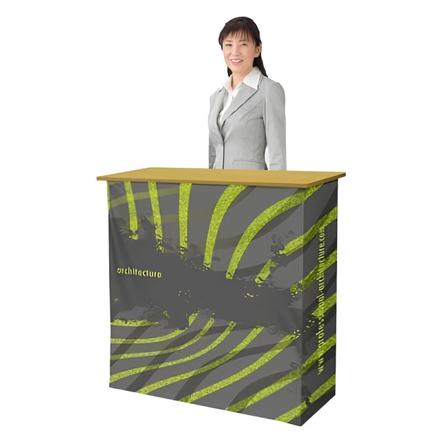 メディア部分が遮光の布になっており、マジックテープで簡単装着。オフィスや展示会、店舗、イベント、ショールームなどにどうぞ。ワンタッチで組立簡単。軽量で持ち運びも楽々。天板は木製でスタイリッシュ。