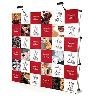 メディアに防炎加工が施された商品。規定のある会場に最適です。 マジックテープで貼り付けるだけ。組み立て簡単大型ディスプレイ。側面にも印刷が入ります。展示会、イベント、ショールームにもディスプレイできます。記者会見用バックパネルにもオススメ。スポットライト2個付。