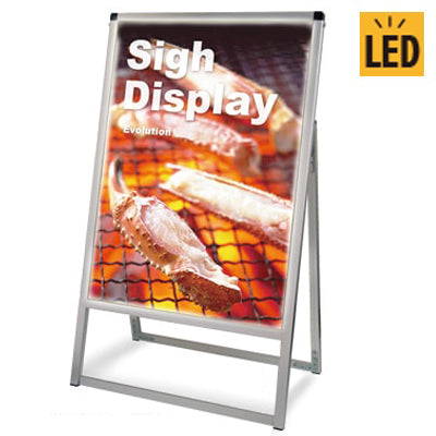 薄くてスタイリッシュなバリウスフレーム看板にLEDタイプが登場!鮮やかでムラのない発光が、暗い所でもしっかりとポスターを美しく演出します。上部のネジを外せば、中のポスターを入れ替えられます※。女性でも持ち運びしやすい軽量設計も魅力。