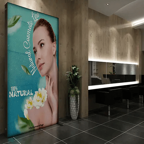両面・片面使用も自由にできる先進的な超薄型LEDバックパネル。 わずか12cmの厚みのフレームから放たれるLEDライトがシーンを問わず広告効果を発揮します。