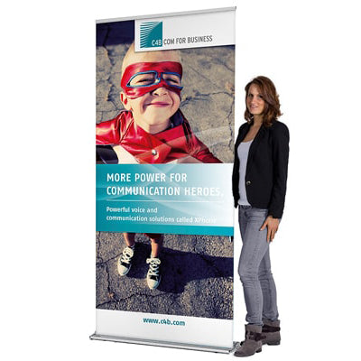 存在感たっぷりのワイドタイプの大型バナースタンド。大きく広告をディスプレイでき視覚効果抜群!巻き込み式で簡単収納!ポータブルスタンドとして、店舗用看板、展示会、イベント、ショールームであらゆる広告スペースにて使用可能!