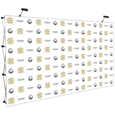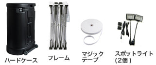 マジックテープで貼り付けるだけ。組み立て簡単大型ディスプレイ。展示会、イベント、ショールームにもディスプレイできます。記者会見用バックパネルにもSNS用写真の背景にもオススメ。スポットライト2個付。